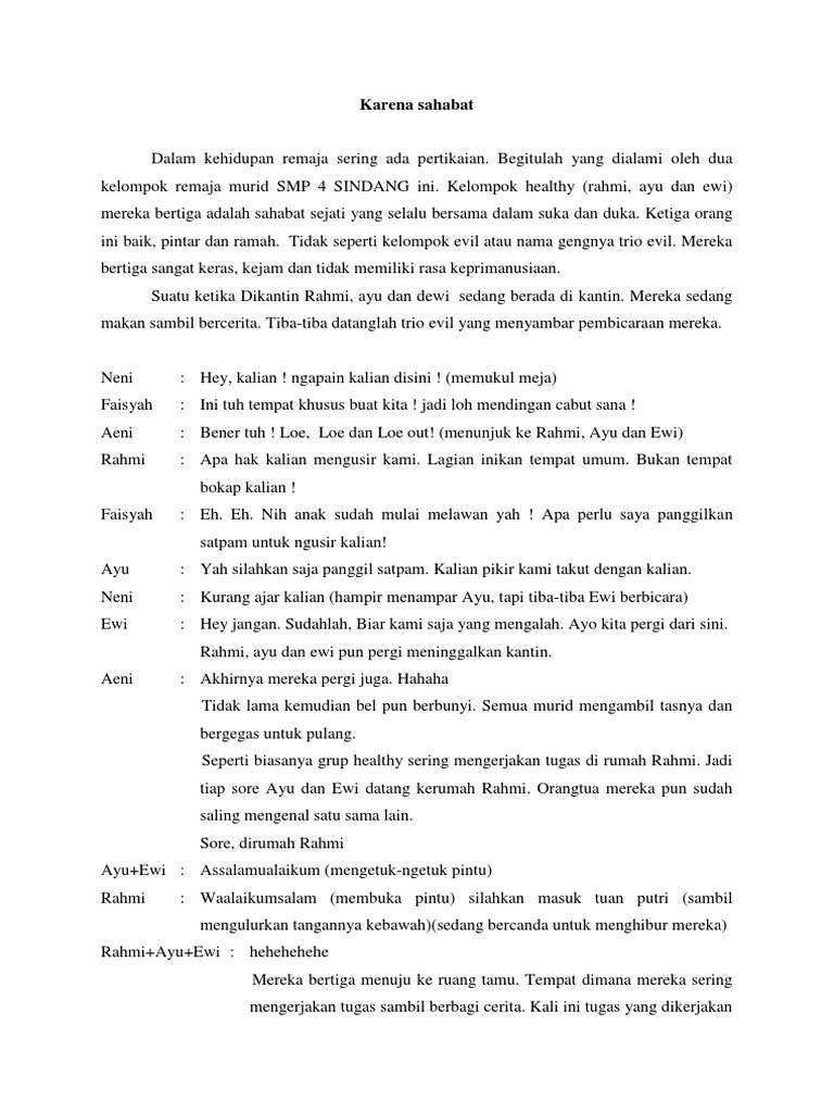 Posting pada uncategorized ditag contoh drama tentang ekonomi contoh naskah 3 paragraf contoh naskah drama 2 orang contoh naskah drama 5 orang tentang . Baca juga artikel game dari kami: Naskah drama 5 orang tentang pendidikan pendidikan belajar gambar anime lucu. Naskah drama biasanya digunakan dalam pertunjukan teater. Dimana materi pembelajaran ini akan diulas berdasarkan pengertian dan contoh. 2 contoh dialaog 3 orang tentang . Mita dan doni, dua orang siswa kelas . Contoh naskah drama singkat 2 3 4 orang pemain. Contoh naskah drama pendek 5 orang. Contoh naskah drama tentang pendidikan singkat di bawah ini adalah contoh teks drama . Drama komedi adalah drama yang menceritakan mengenai sebuah kejadian yang lucu. Contoh naskah drama 5 orang. Ada beberapa jenis drama yang ada salah sebuah drama, diantaranya adalah: